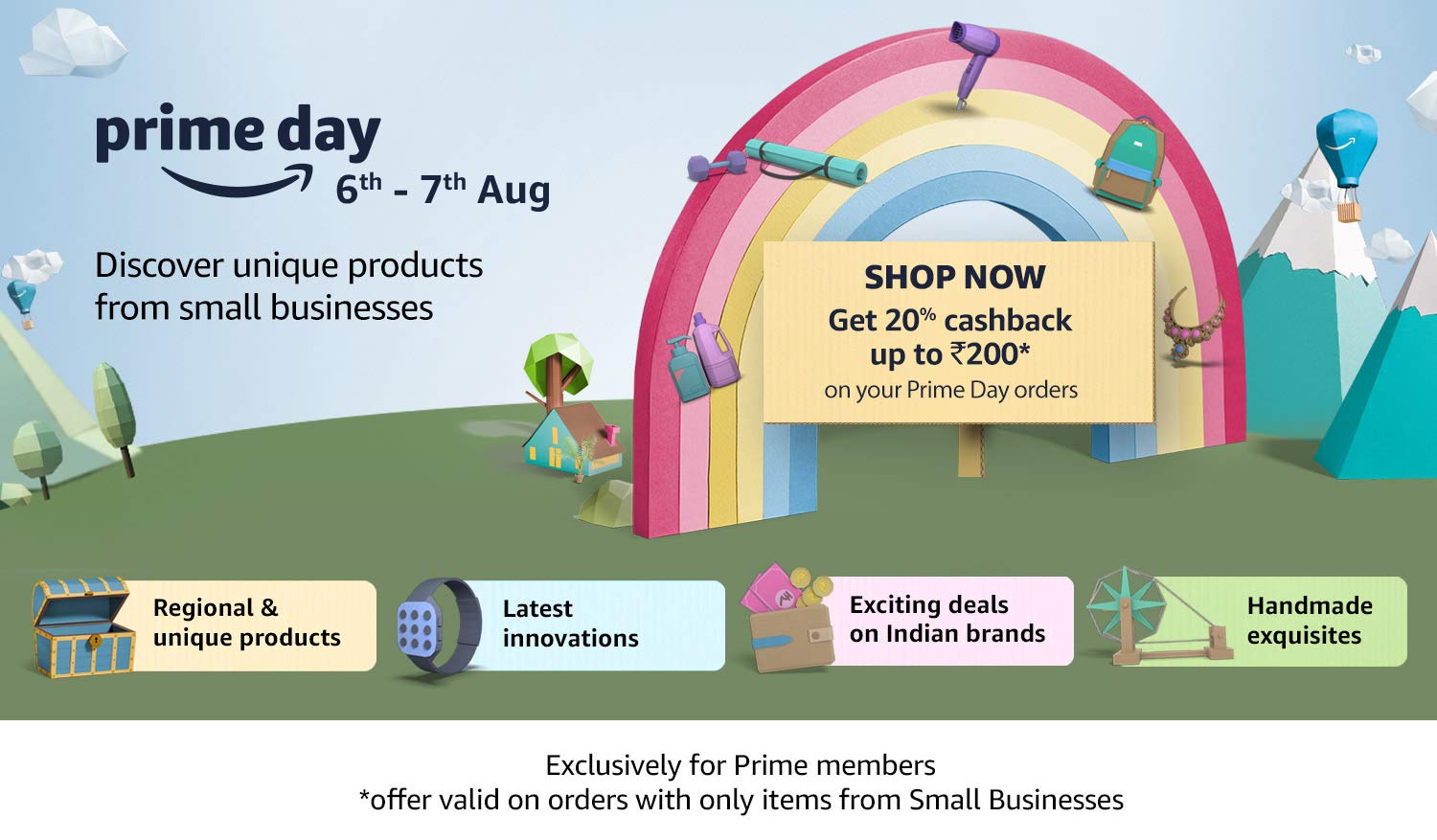 **Get 20% Cashback Upto ₹200 On Prime Day Orders | Shop From Small Business- Click Here