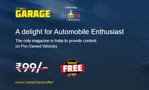- 1. This offer (Hereinafter referred as “Offer”) is organized and by Droom wherein you (Hereinafter referred as “Subscriber”/“You”/” Your”/”User”/”Buyer”) can order and download the “Droom Garage” e- magazine (Hereinafter referred as “Magazine”) from the link provided to you by Droom on your email or any active link placed on any of the websites owned and operated by Droom.