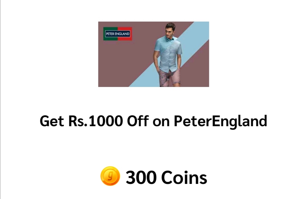 Gaana Coins Rewards Offer, redeem 300 Gaana coins and get Rs.1000 off coupon on PeterEngland. Minimum purchase required of Rs.3000 into the nearest PeterEngand store. This offer is valid till 31st August 2020.