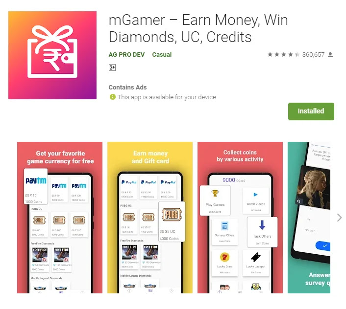 mGamer is one of the best Paytm cash-earning apps available on the play store. It is a 100% genuine app so you don’t need to worry. mGamer has various ways to earn money such as playing games, completing surveys, installing apps, and more.