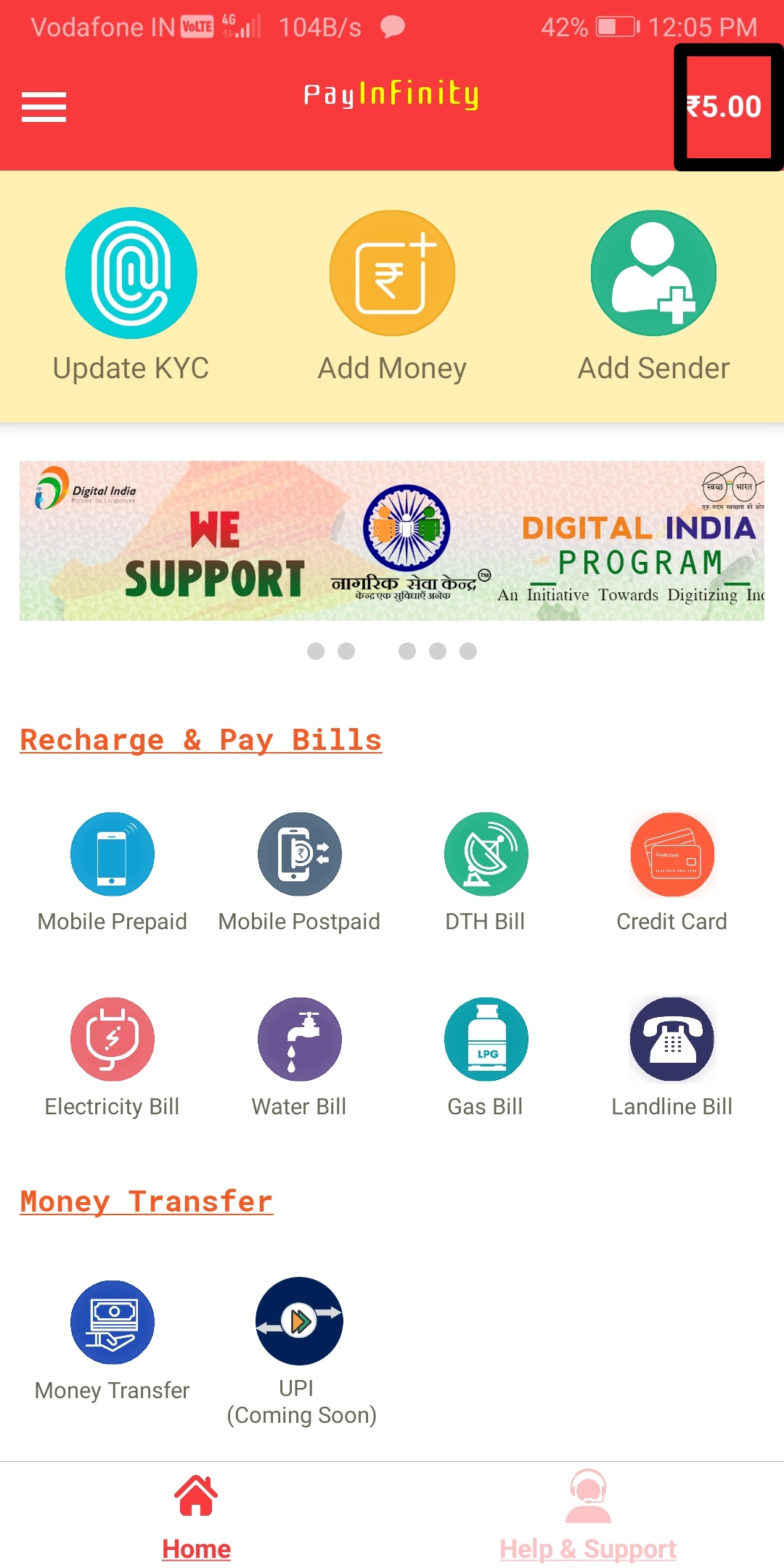 6) Go to the Dashboard and check you will receive ₹5 in wallet