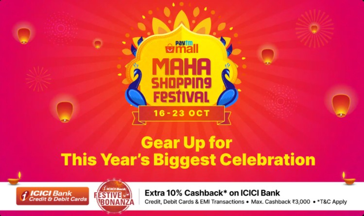 Paytm Mall Maha Shopping Festival sale is starting from the 16th of October and will be valid until 23rd October 2020. This festive season, Paytm Mall Mall is back with Maha Shopping Festival, the best online Diwali sale. As a part of this sale, Paytm Mall is offering 10% Cashback up to ₹3000 on ICICI BANK Credit / Debit card % EMI transactions. During the sale customer will get up to 80% discount on Laptops, Home & Kitchen, Grocery, fashion and avail 30% off on smartphones from top brands.