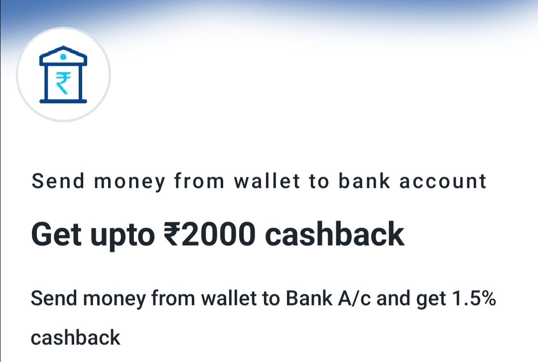 Upto ₹2000 Cashback On Send Money From Wallet To Bank-
