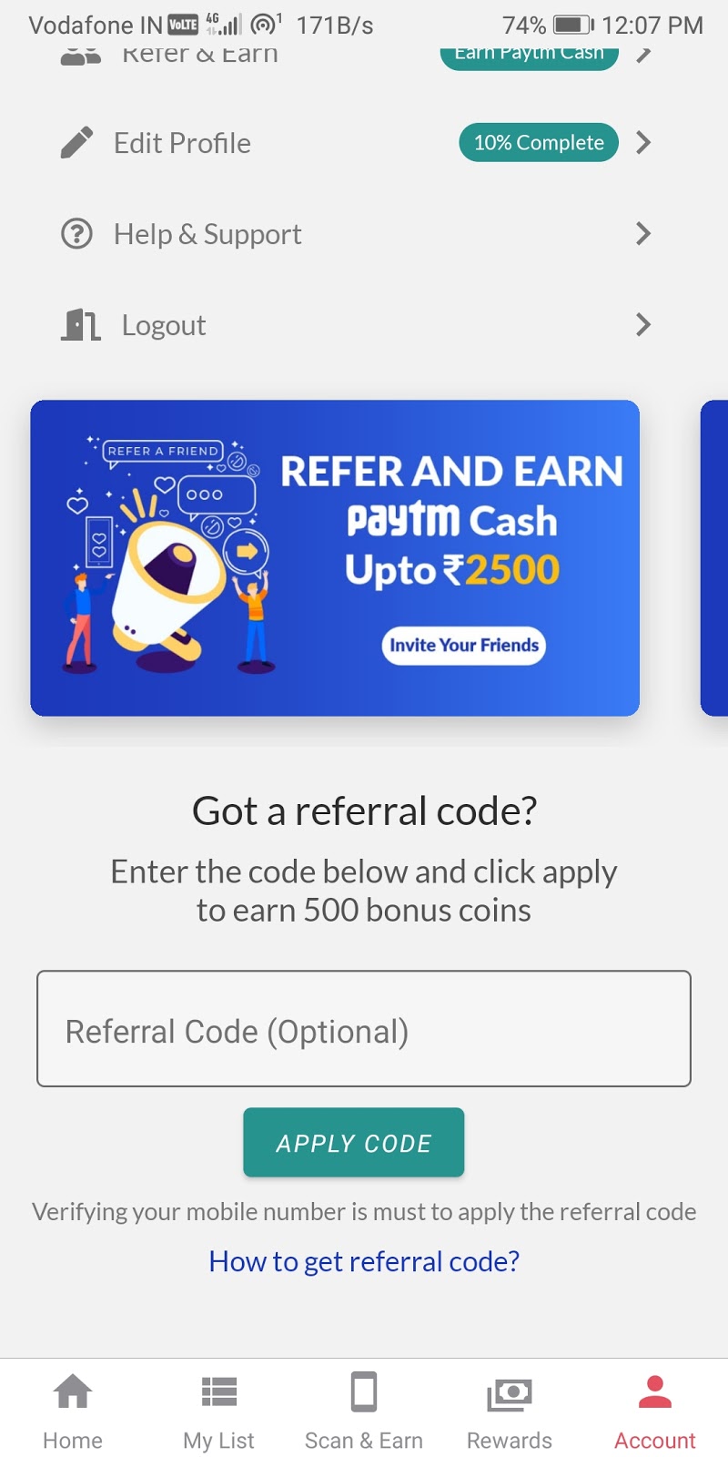 5) Then back to account section and scroll down the bottom now apply the referral code ZAHTBDKQ