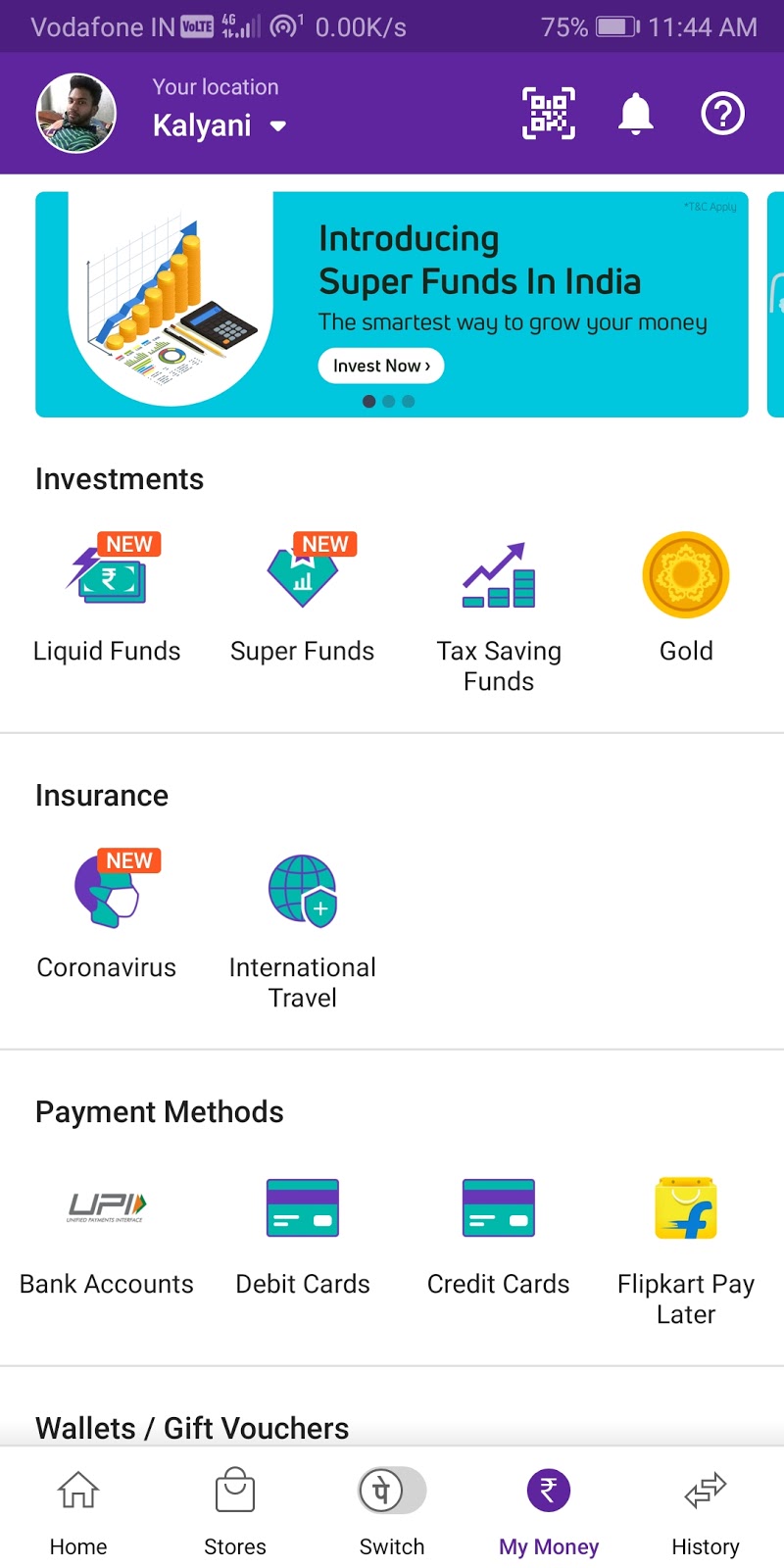 In this picture PhonePe wallet/Cashback option not showing because there is no money in the wallet