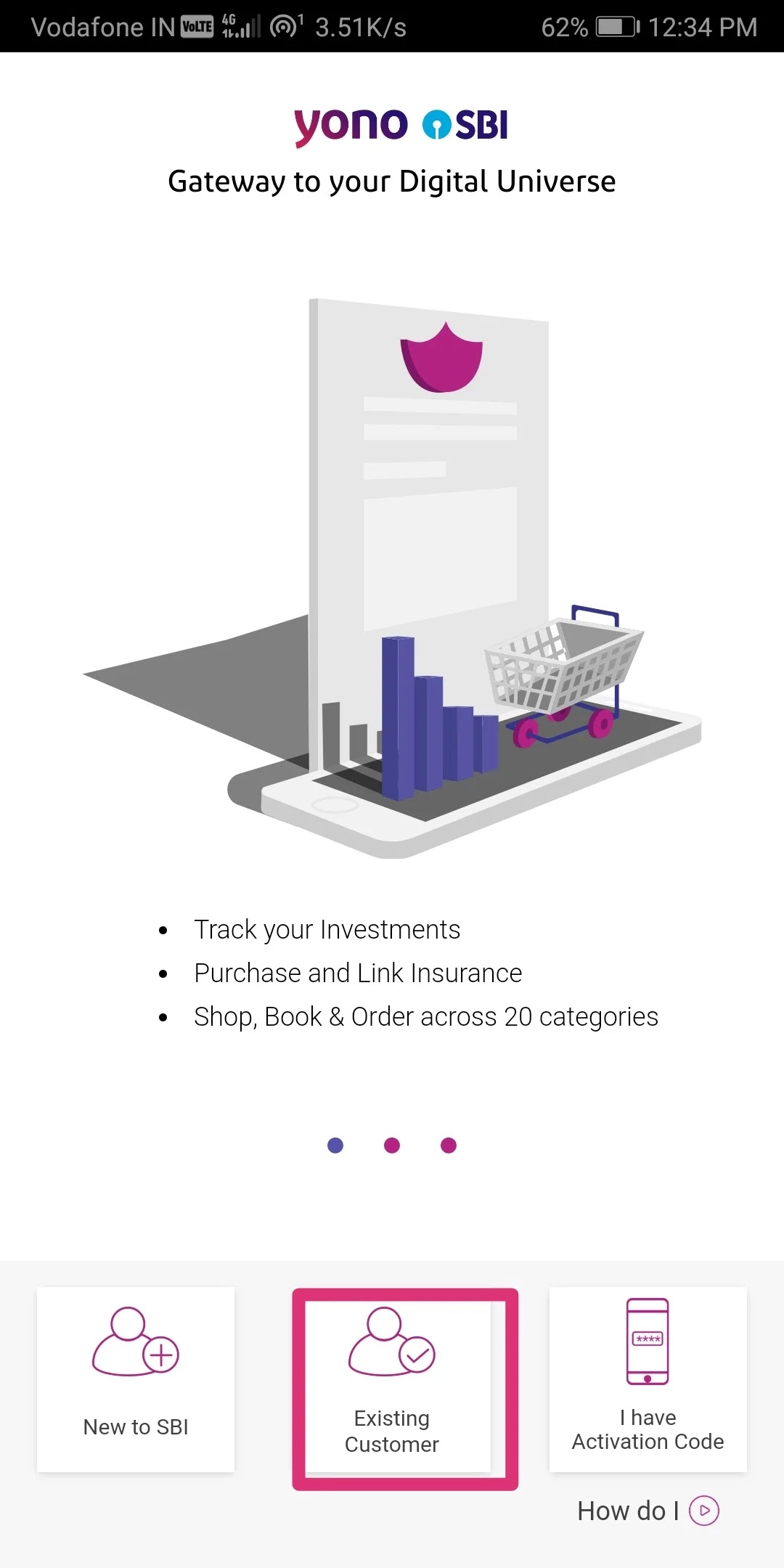 2) Install, open the app and click on the Existing Customer option